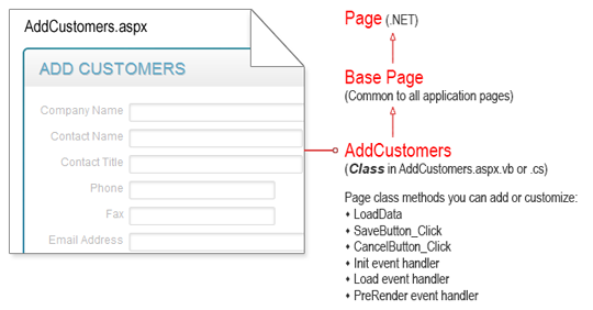 Generated user interface classes inherit directly from Microsoft .NET framework classes.
