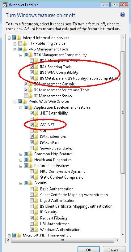 in the "IIS 6 Management Compatibility" section are turned on: