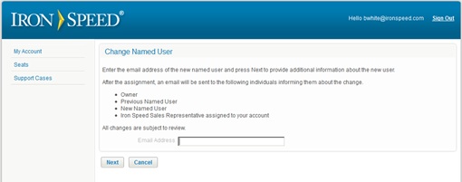Step 4: Click the ‘Change Named User’ button and enter the new user's email address.
