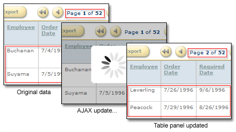 Ajax-enabled smooth panel updates eliminate postback flicker in table and record panels.