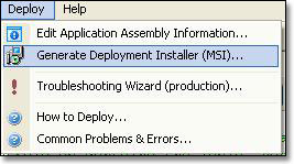 The new Deploy pull-down menu consolidates deployment installer and production application