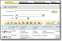 - Table and row buttons