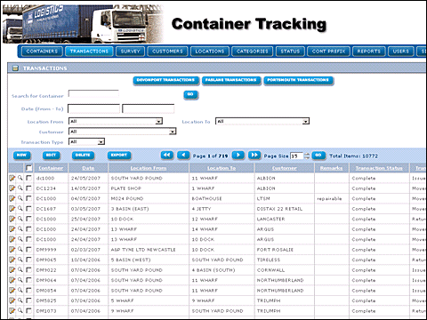 The Container Tracking System tracks the movements and the condition of containers. It details surveys and
