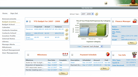 Grantee's main dashboard.