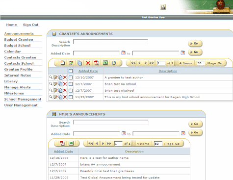 | Provides forms that allow the grantees and schools to input the data required to evaluate their performance.