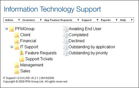 Reporting services pages allow administrators to view support tickets quickly.