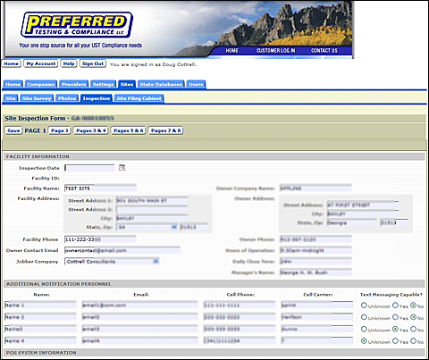 Portal on a daily basis to track their customers, add new sites, update inspection information, and