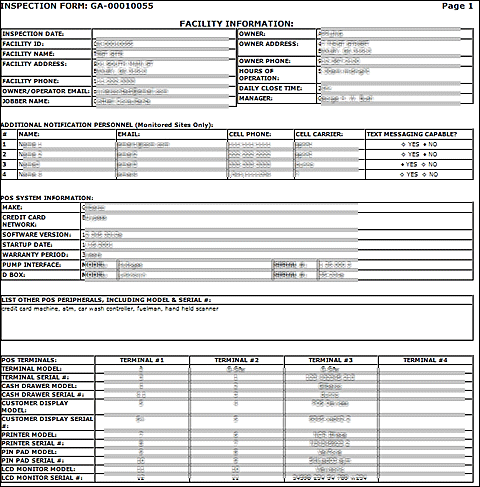 the equipment at their sites, the current status of the sites, and a history of testing. The