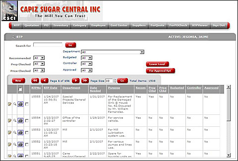 for viewing and sorted according to user, department, and user role. Upon final sign-off, a purchase