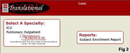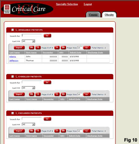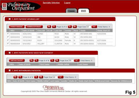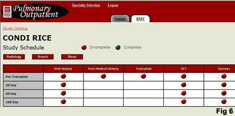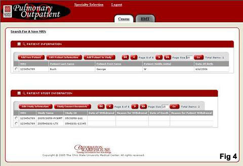 he is taken to a study patient census page (Fig 5). From this page, the user can select a patient for