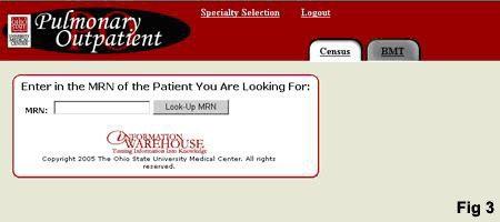 (Fig 3). Here the user has the option to search for a patient using his MRN (Medical Record Number)