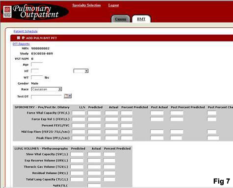 This application serves as a central data depository for all data collected during each pulmonary