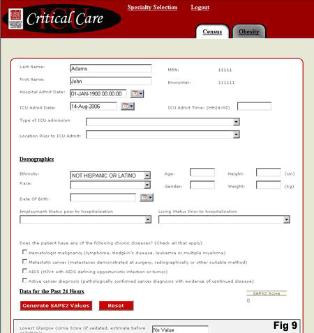 (Fig 8). From the inpatient census page, the user can select a patient and enter general and demographic