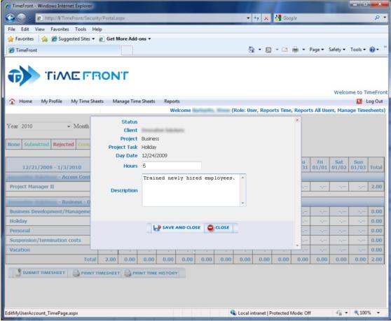 | Custom coded time entry pages which are integrated with Telerik Tooltip controls. |