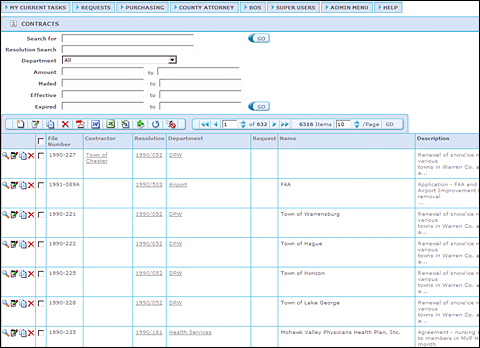 years of resolutions and contains more than 14,000 records. The Contract Table