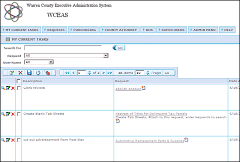WCEAS action begins when a department submits a Resolution Request to be entered into