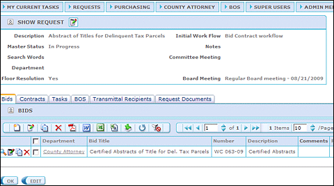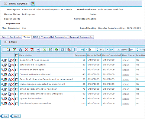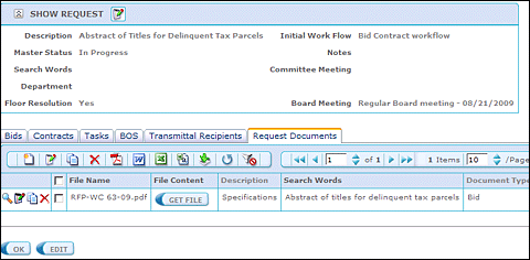 necessary resolution(s), contract(s), bid(s), document(s), and tasks(s) all under one container,