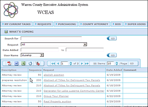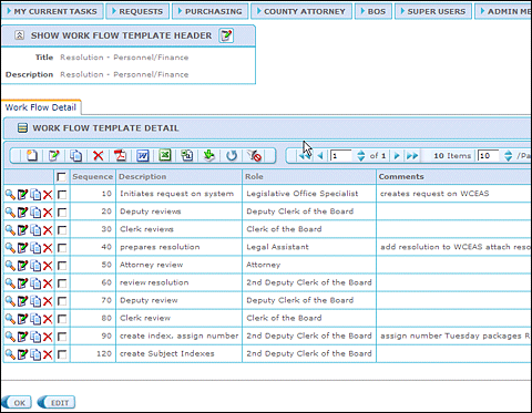 of Supervisors, County Attorney, Purchasing, and the Workflow Module. That process would
