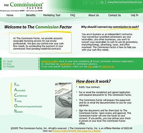 TheCommissionFactor.com. TheCommissionFactor is a small start-up company that advances