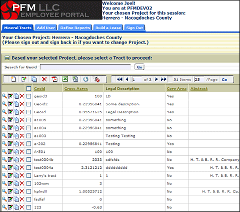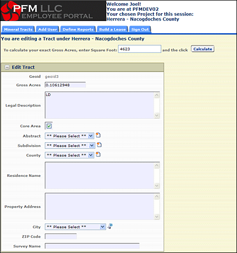 there is a list of land tracts where users input mineral divisions based on ownership information. Each