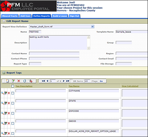 The PFM Reports application was developed by River City Software Development LLC for its client,