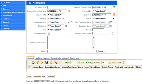 entering new incident data or looking up and editing existing cases. Users can capture required information for incident case management.