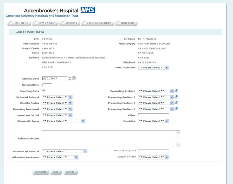 by the hospital, as well as the outcome of each patient. Addenbrookes Hospital uses