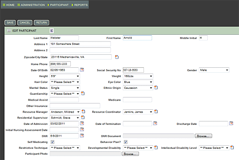 The Edit Participant Page allows a user to quickly update a participant's information as well as enter documentation records for a variety