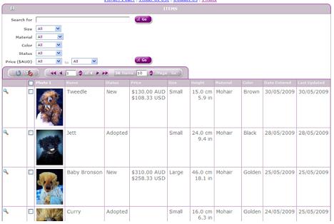 Interested people go to the website and are able to browse through her inventory by price, size,