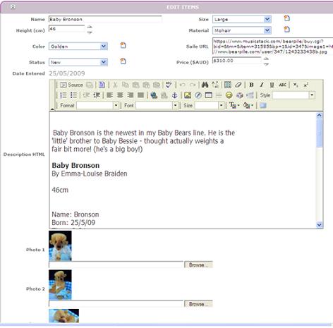 Editing the bear description is easy using the Rich Text Editor, even though Emma doesn't know any HTML.
