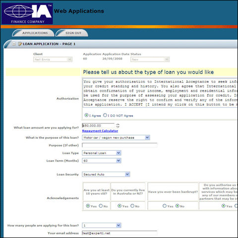 | The WebApps system lets IA brokers and customers enter loan applications via a secure website.