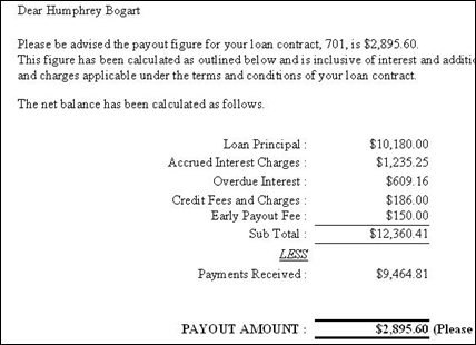a loan statement for a borrower, or a payout quote for those borrowers who want to pay out a loan prior to
