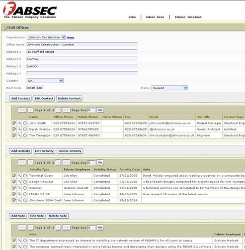 Fabsec's customer base is the structural engineering market, and the advisory engineers use the application to store