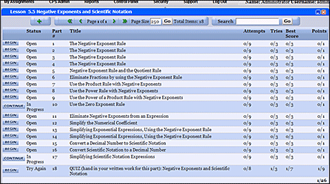 It also shows they have started the part, finished it, etc. The students can start their work from