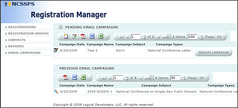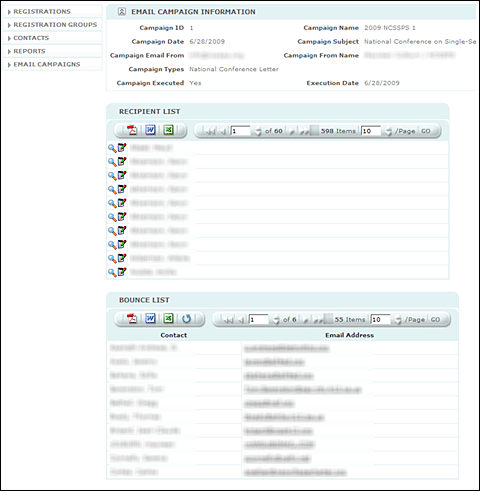 Registration Manager — Allows customers to track registrants, maintain contacts, and conduct email marketing campaigns