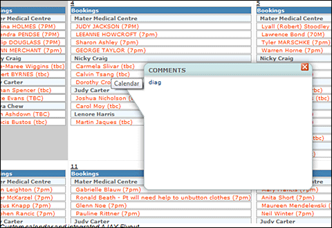 other side, the individual staff members use the staff calendar to see which bookings have been