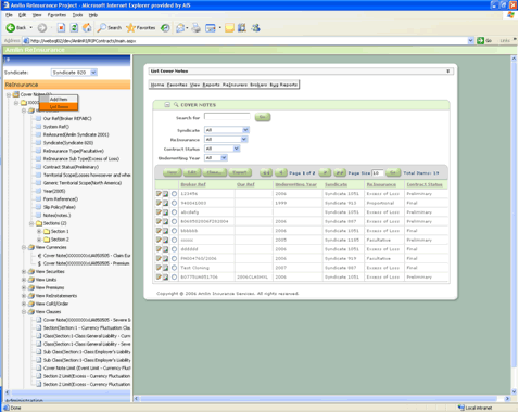 The Amlin Reinsurance Project application was designed and written for Amlin plc, a UK