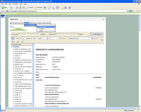 Insurance company. The application provides reinsurance experts a way of storing, processing